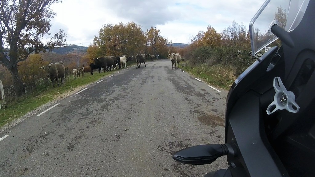 Un poco más adelante cruzaremos el río Jarama y nos introduciremos durante unos kilómetros por la provincia de Guadalajara, por un tramo que alterna prados con explotación ganadera (ojo a la presencia de ganado vacuno en la carretera) con un espeso robledal que envuelve el trazado.