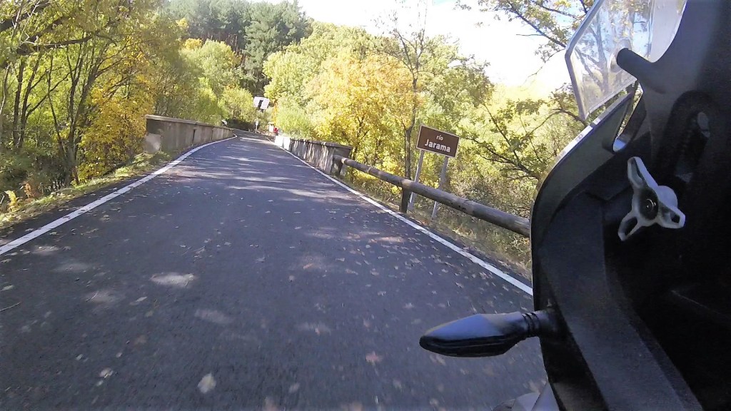 Iniciamos el corto ascenso al puerto de El Cardoso, de 1.358 metros de altitud, por una sinuosa carretera de curvas enlazadas y con pretiles de piedra que nos protegen de una posible salida de pista al río Jarama.