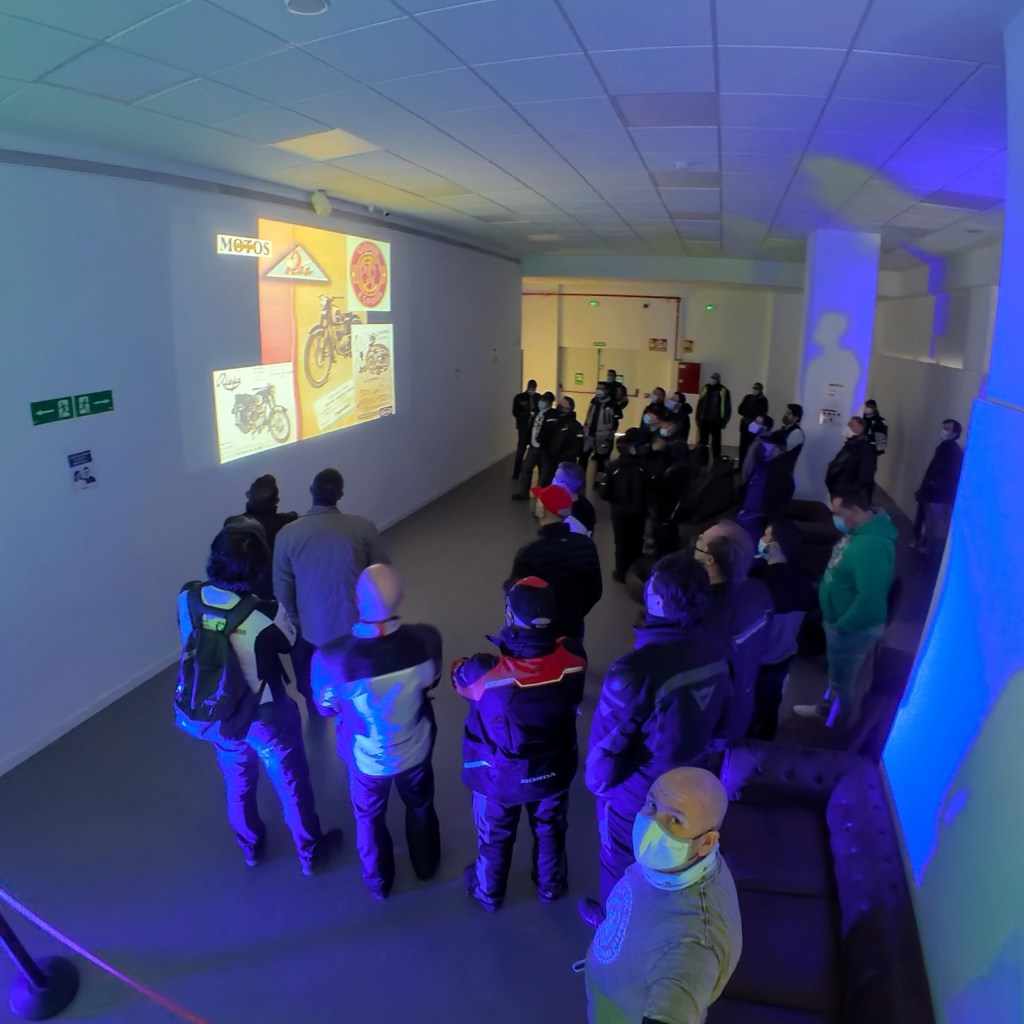 Inicialmente accedemos a una primera sala donde nos encontramos con una gran pantalla con contenido audiovisual que nos informa sobre la evolución de la industria de la motocicleta en España y su importancia para motorizar a los españolitos de a pie de la posguerra y el desarrollo en las siguientes décadas.