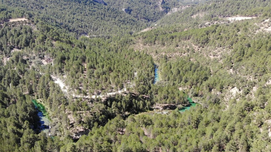 Desde el puente de Martinete nos desviamos por una de estas pistas en busca de la Laguna de Taravilla, donde en época estival no debemos perder la oportunidad de hacer un picnic y darnos un chapuzón lanzándonos desde su pequeño embarcadero.