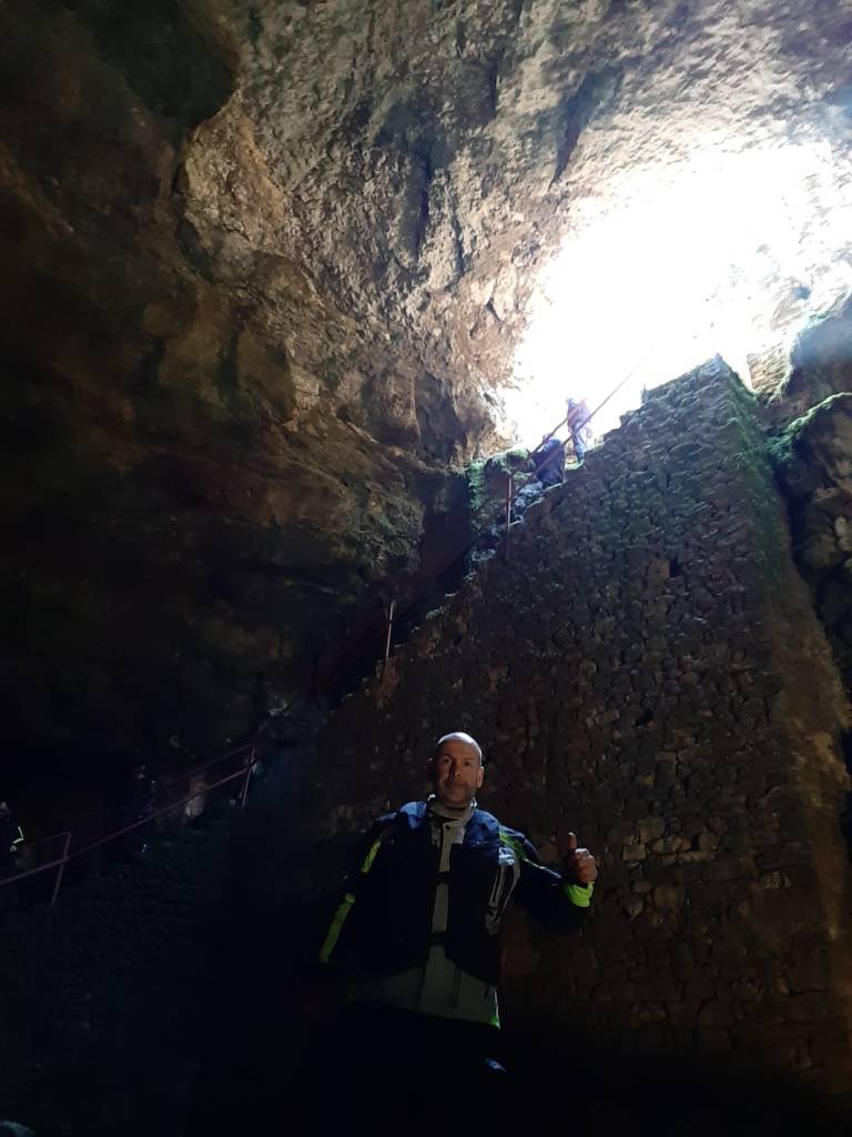 Se trata de un pozo natural de mas de 60 metros de profundidad, al que podemos descender por sus 207 escalones de piedra y donde encontraremos una gran colada que vierte sus aguas desde una pared de roca hasta una represa.
