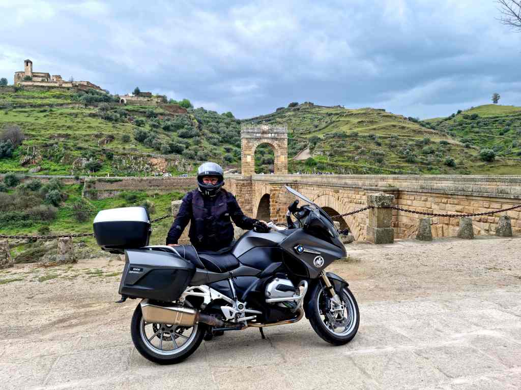 Con una longitud de unos 200 m y una anchura de su calzada de 8 m, todavía hoy se puede circular por este majestuoso puente, aunque está en marcha la construcción de un nuevo puente cercano, por lo que en poco tiempo dejará de ser transitable con nuestras motocicletas; no pierdas la oportunidad de cruzarlo por su pavimento de losas planas de piedra, que durante casi dos milenios ha permitido atravesar el río Tajo.