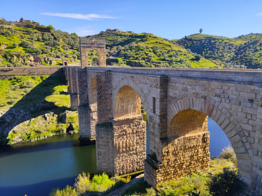 Construido sobre un tramo estrecho del río Tajo, se trata del puente romano más alto del mundo con sus cerca de 60 m de altura y está coronado con su característico arco del triunfo, el cual conserva una dedicatoria al hispano emperador Trajano; si bien su actual nombre proviene de los árabes, pues Al-Qantarat significa “el puente”.