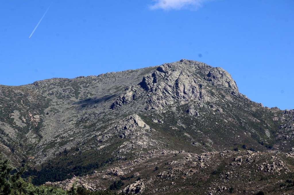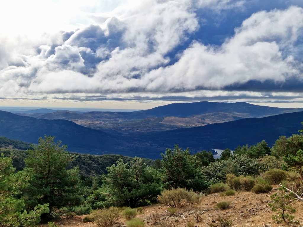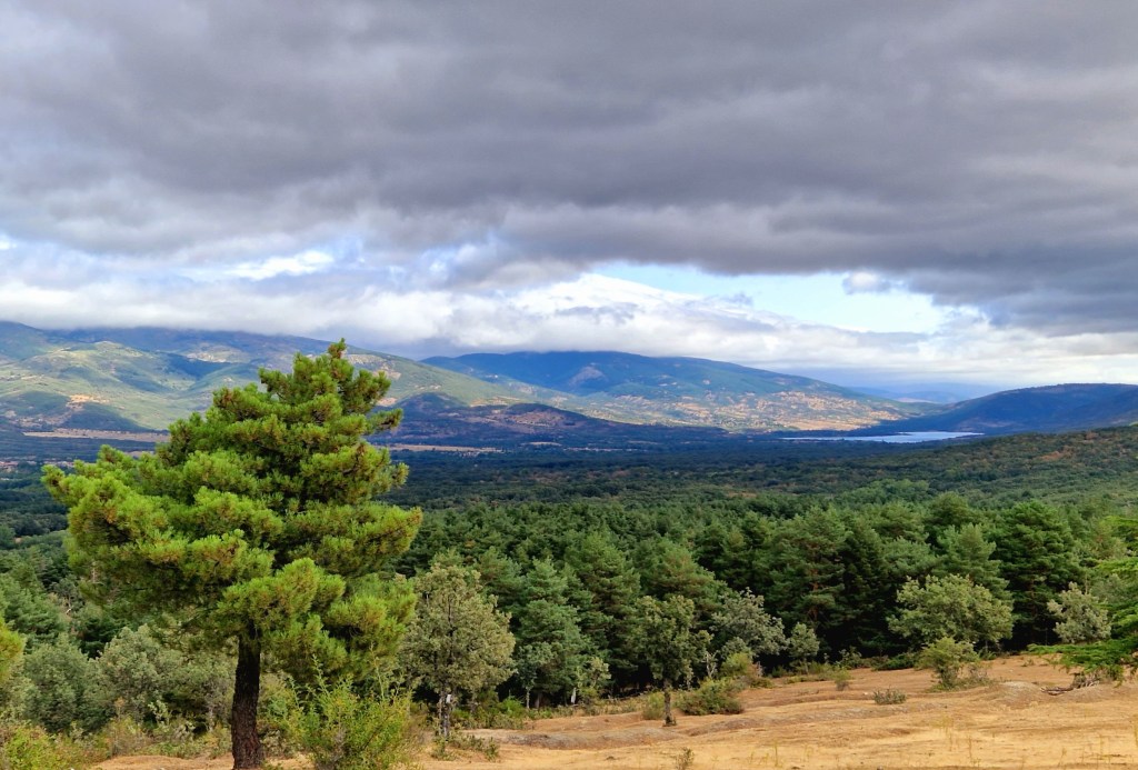 Iniciamos ahora el descenso a Rascafría y nos desviamos al mirador de los Robledos, desde donde podemos disfrutar de unas magnificas vistas del Pico Peñalara (2.428 m) y del valle del Lozoya.