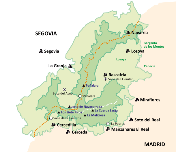 La Sierra de Guadarrama, declarada como Parque Nacional hace algo más de una década, está ubicada en la parte oriental del Sistema Central y es la barrera natural entre la cuenca del rio Duero en la meseta norte y la cuenca del rio Tajo en la meseta sur.
